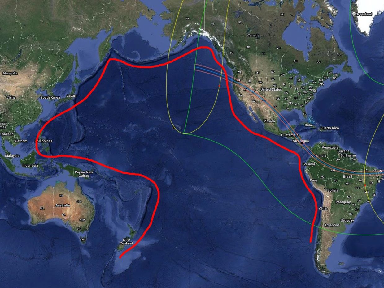 Another thing worth mentioning is the fact that the appellation Ring of Fire more commonly refers to the series of tectonic zones that border the Pacific Rim. Beginning near New Zealand, the Ring runs northward through Tonga and Samoa, then westward through Micronesia and the Philippines, up through Japan, across the Aleutian Islands and down through the westernmost portions of North and South America.
